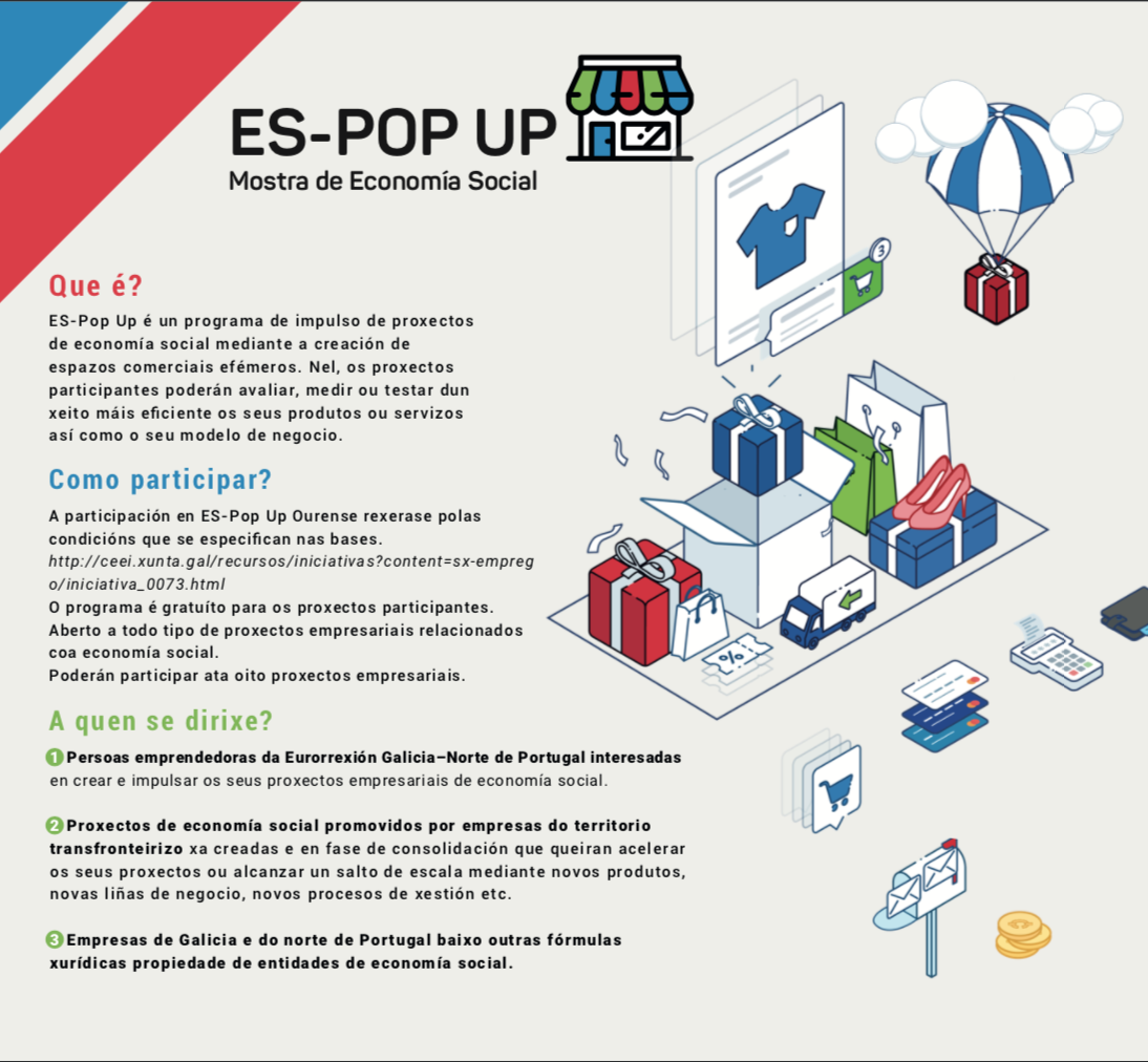 A Mostra de Economía Social ES PopUp de Santiago de Compostela, impulsada pola Xunta de Galicia, celebrouse os días 17, 18 e 19 de outubro na Praza Roxa. Os medios de comunicación fixéronse eco do evento: Radio Galega Efe Noticias La Voz de Galicia...